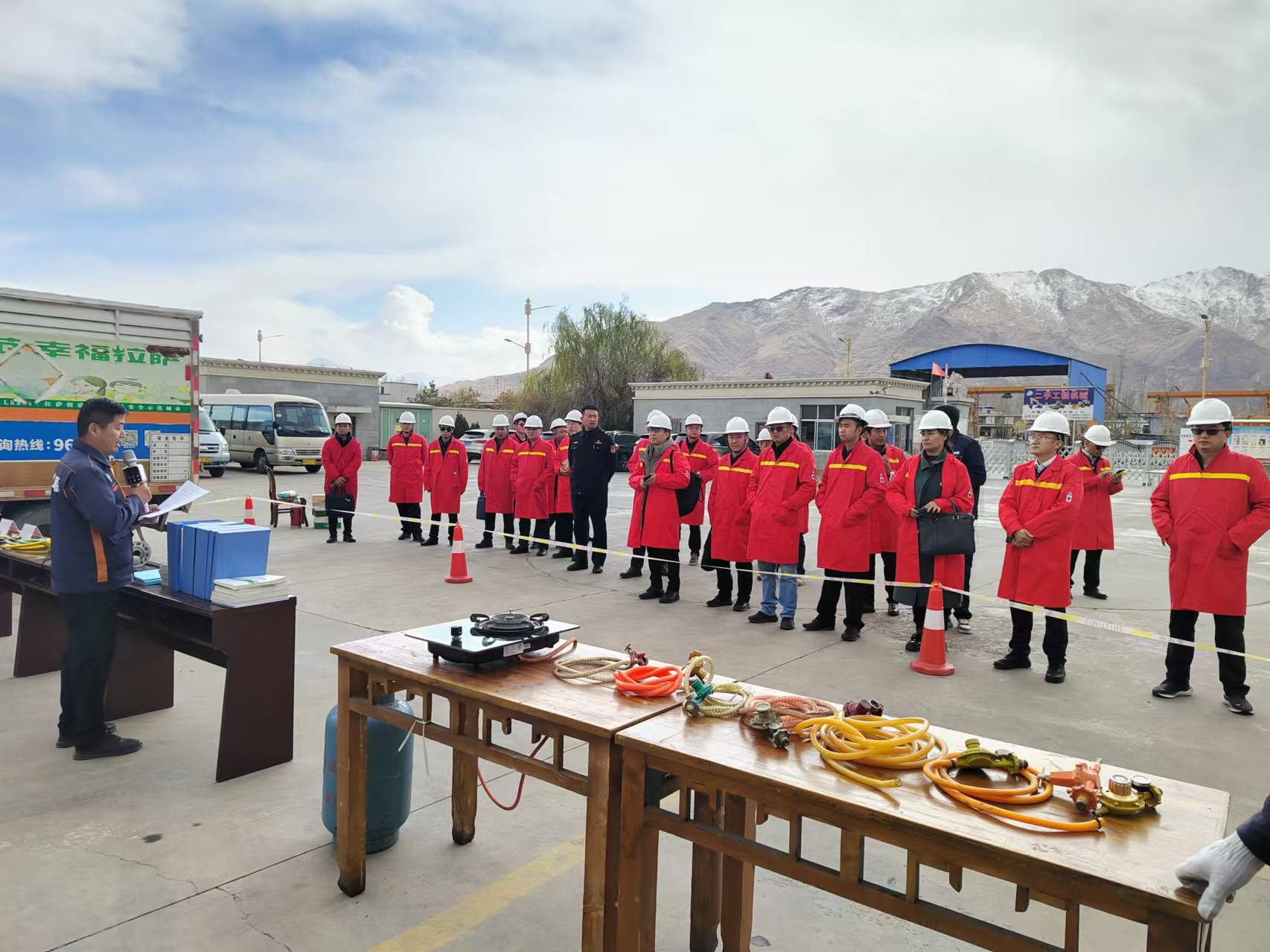 现场会前,集中组织观摩了雪山液化气储备库有限公司瓶装液化气入户安检全流程演练,现场介绍了冬季燃气监管重点工作以及燃气软管标准、自闭阀使用、气瓶安全等相关知识;参观了拉萨市建筑垃圾处置中心建筑垃圾贮存场地、生产车间、环保设施建设以及产品展示相关内容。