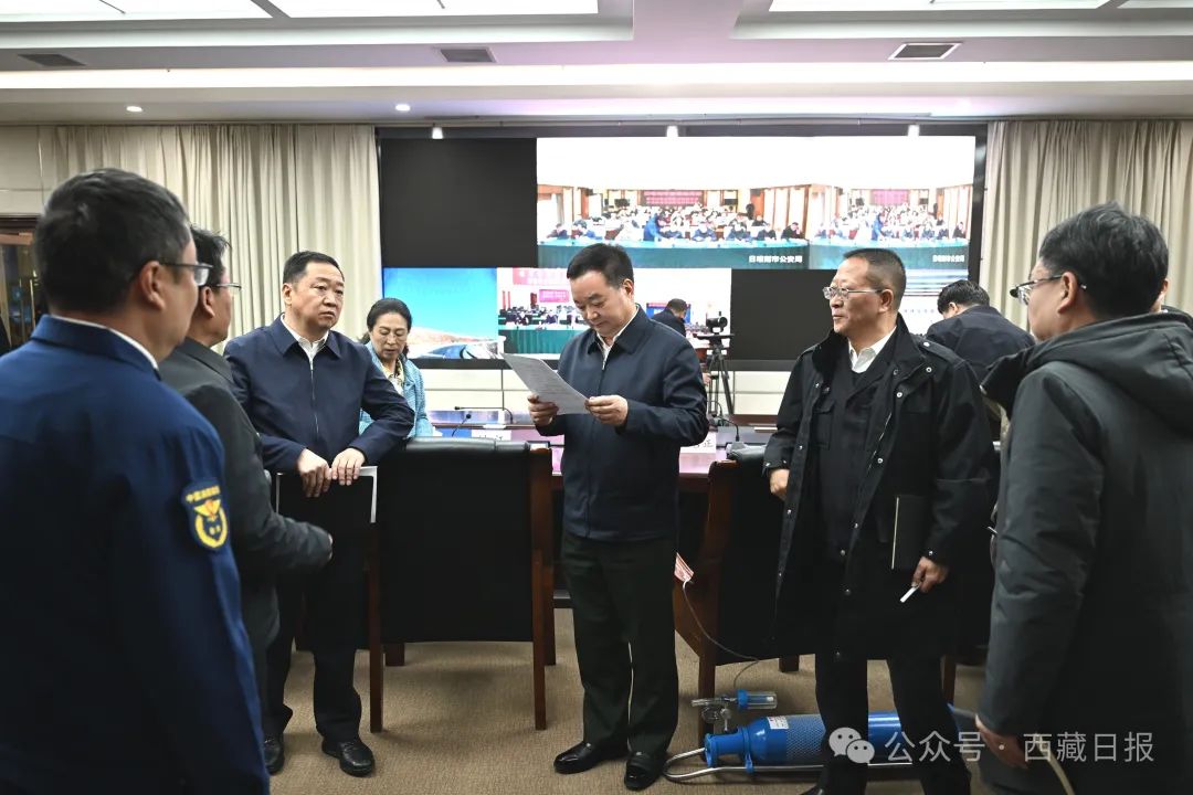 1月7日,自治区党委书记王君正在自治区维稳指挥部调度部署日喀则市定日县6.8级地震抗震救灾工作。记者 旦增西旦 摄