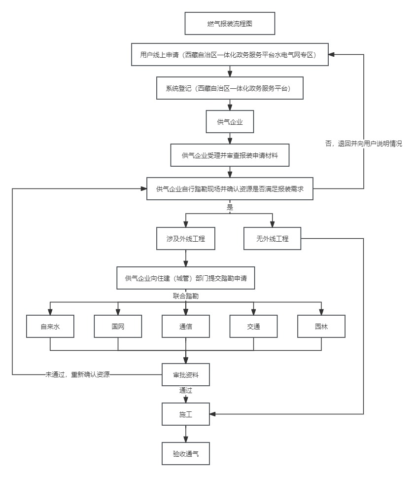 3.各相关部门在实现系统融通和数据共享基础上将报装申请进展情况实时推送至西藏自治区政务服务网。