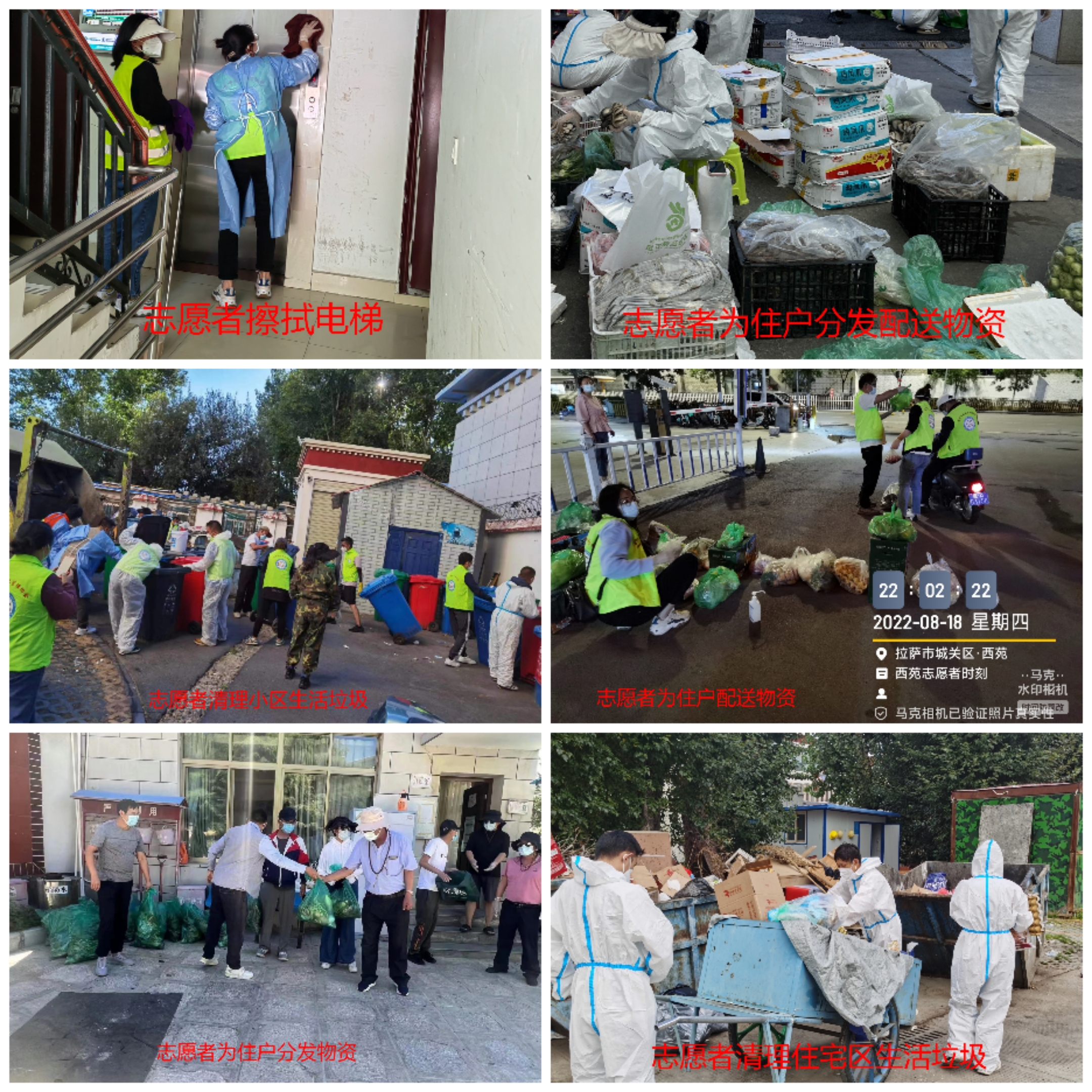 事无巨细,织起生活保障网。目前正是拉萨市疫情防控的攻坚时期,为做好广大居家群众的物资生活保障,住建系统志愿服务队充分发扬服务精神,勇于担当,主动作为,为住户提供了生活、环境卫生保障。一是积极沟通,联系蔬菜、水果、肉蛋奶等生活物资供应商,为封控在家的住户提供采购渠道,并在物资到达后进行消杀分发,保障了住户基本生活保障;二是主动承担起小区“环卫工”职责,打扫居住小区公共区域卫生、定时收集运垃圾,保障了小区环境卫生,减少了细菌滋生感染风险。